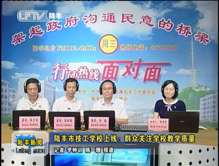 6月13日晚上,我校上线“行风热线”直播,在陆丰市广播电视台直播室现场解答群众提出的所关心的热点问题。我校张鑫校长、陈朝阳副校长和林汉海副校长上线直播,张校长对学校办学理念、发展目标、专业建设和办学优势等作了介绍。上线直播期间,有多位热心群众就教学质量、报考专业收费、技能培训、就业和继续深造等相关问题进行咨询和关注,我校三位校长在现场一一作了回答。通过这次上线进一步加强学校和群众交流和了解,对加深大家对技工教育突出技能训练的认识,坚定学生技能成才的信心等方面收到很好的效果。